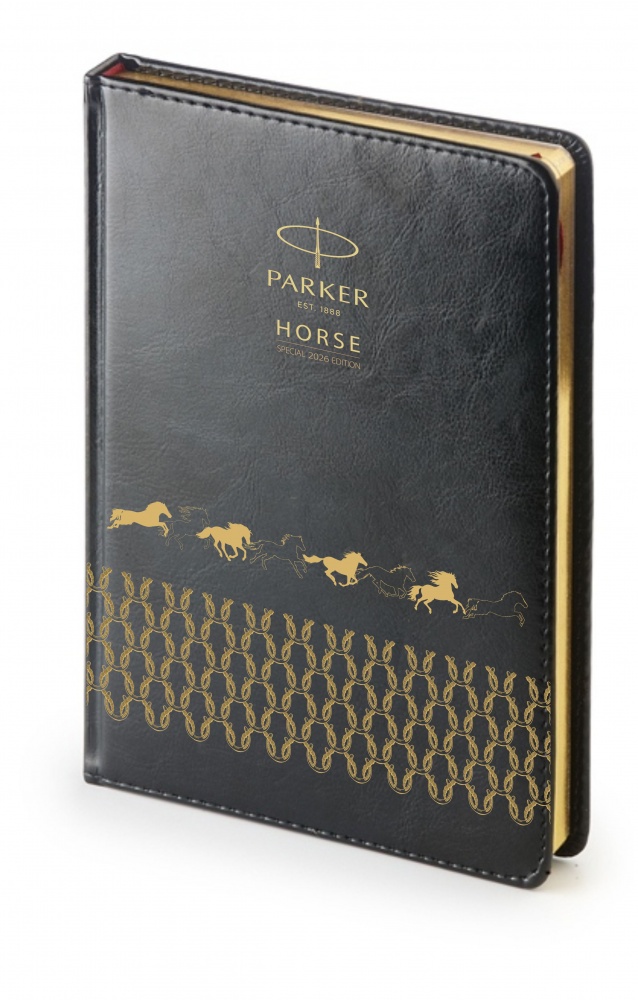 Подарочный набор: Шариковая ручка Parker Jotter Horse Special Edition в подарочной коробке и ежедневник недатированный черный с золотым срезом